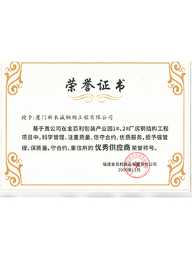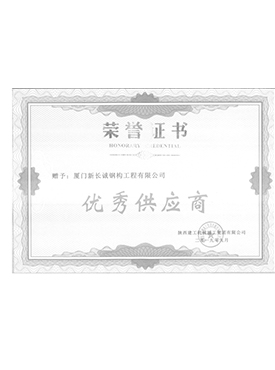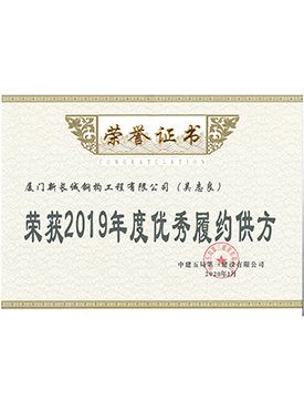 廈門新長(zhǎng)誠(chéng)2019年度優(yōu)秀履約供方榮譽(yù)證書