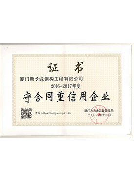 廈門新長(zhǎng)誠(chéng)鋼構(gòu)工程有限公司守合同重信用企業(yè)2016-2017年度
