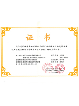 保灃3號廠房建設(shè)工程廈門市結(jié)構(gòu)優(yōu)質(zhì)工程證書